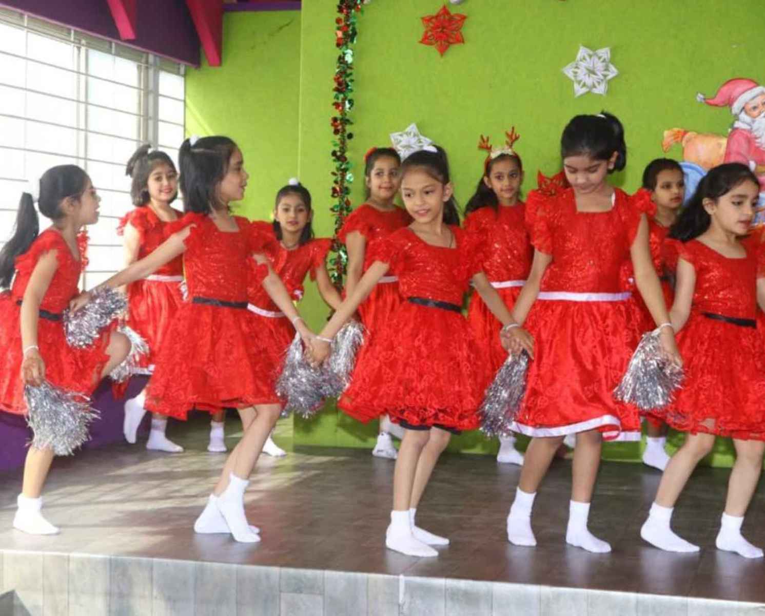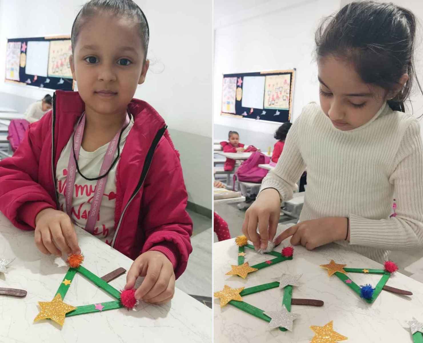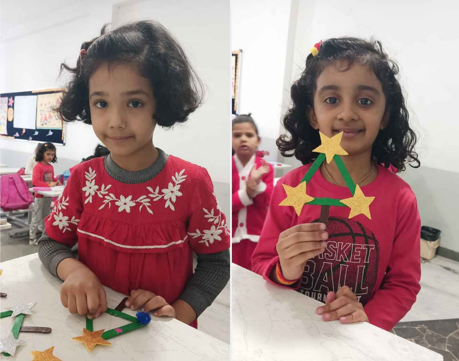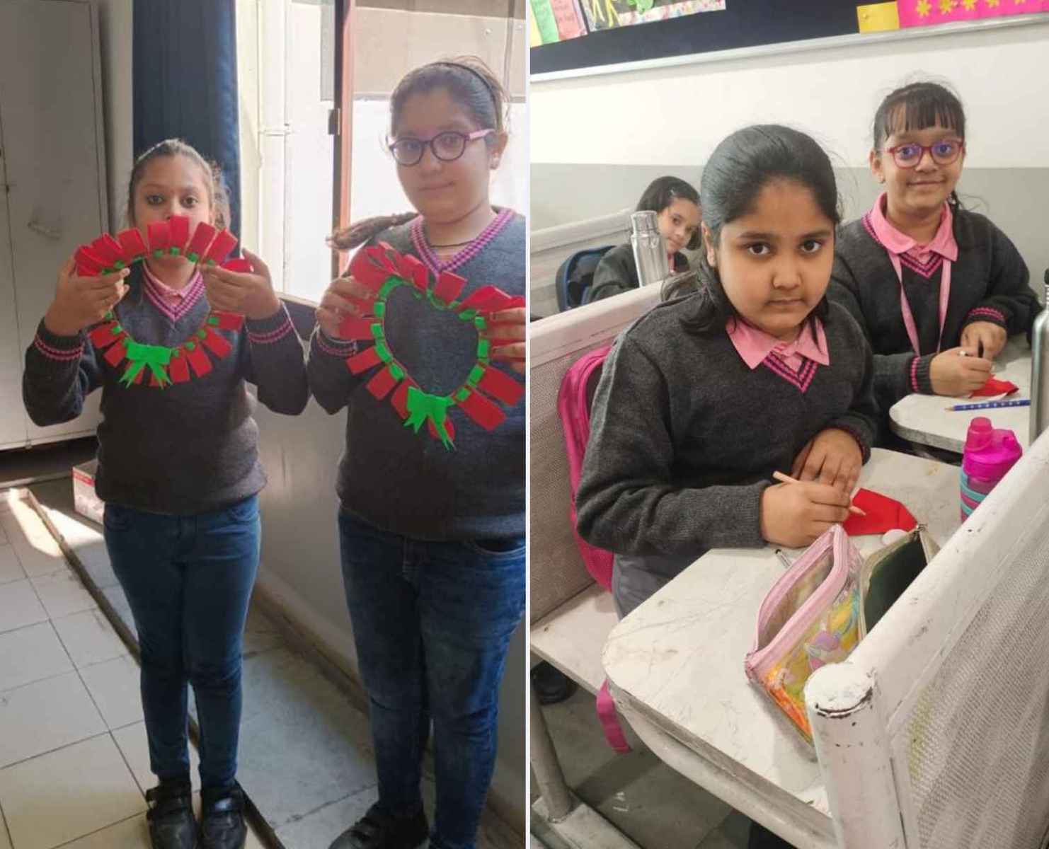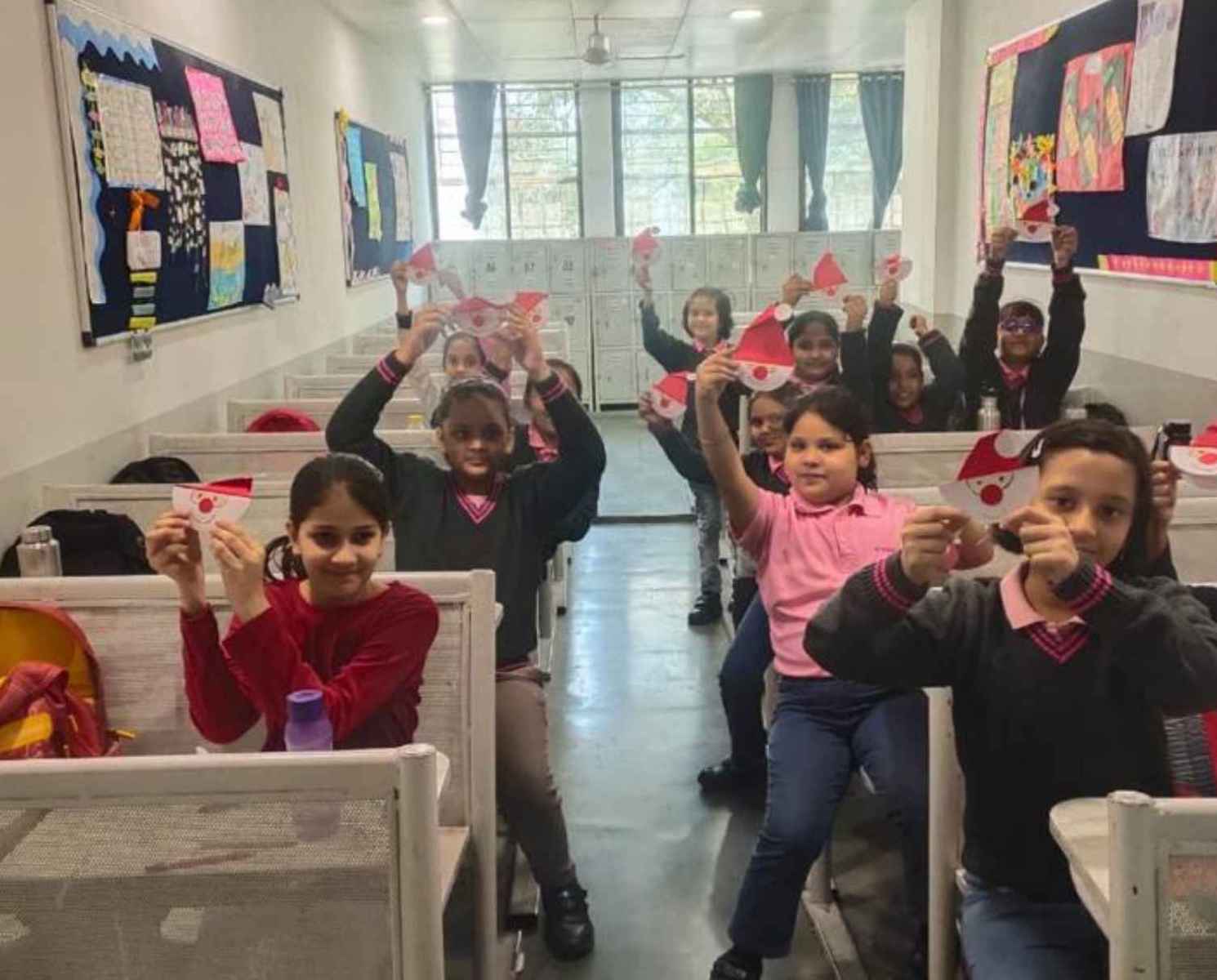 The school wore a festive look with bells, streamers, and a beautifully decorated Christmas tree. Several activities, such as decorating Christmas Trees and Stockings, making Christmas Cards, and Hand-crafted Bells were done by the students from grades Nursery to VII. The children were told about the birth of Lord Jesus and the legend of Santa Claus. The spirit of giving and sharing was inculcated among the tiny tots.