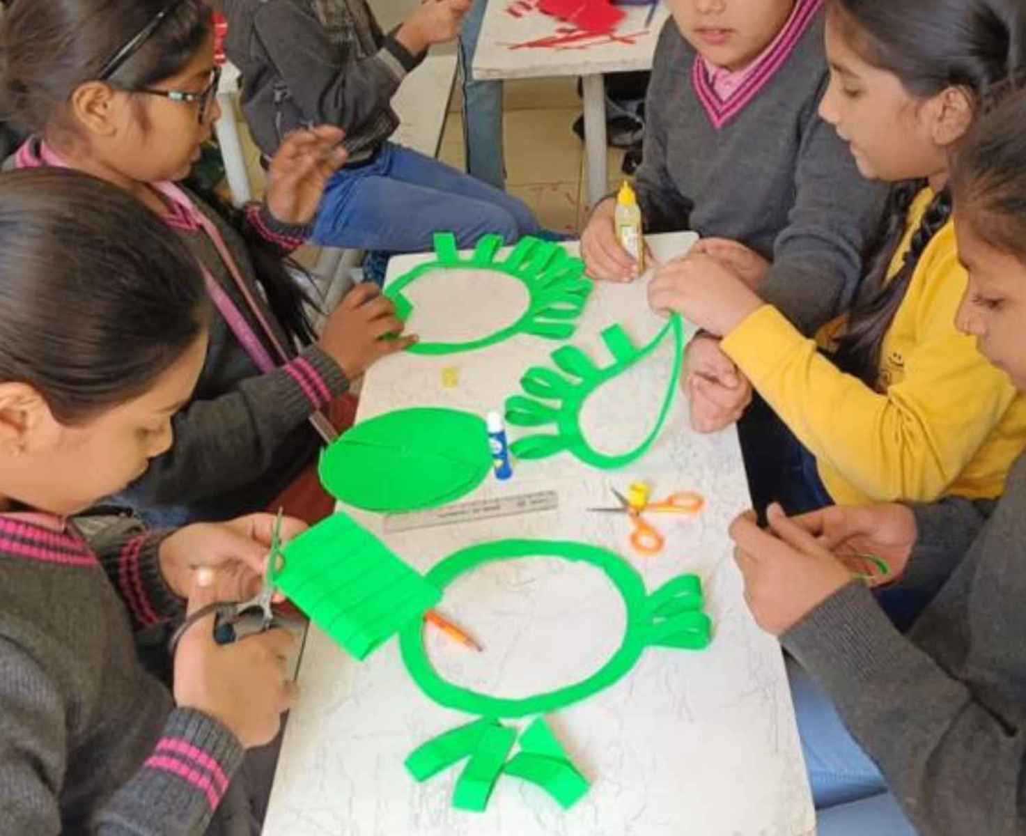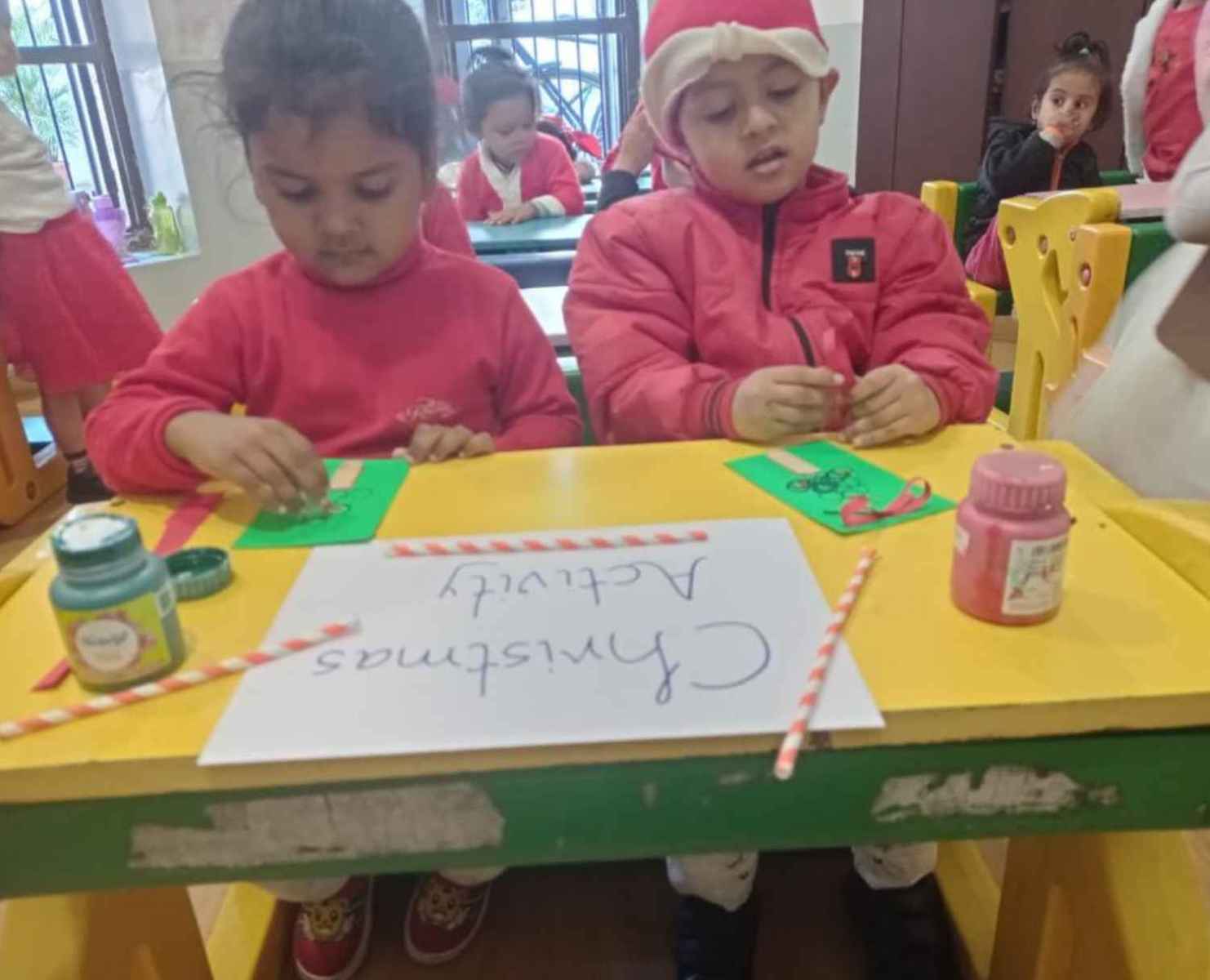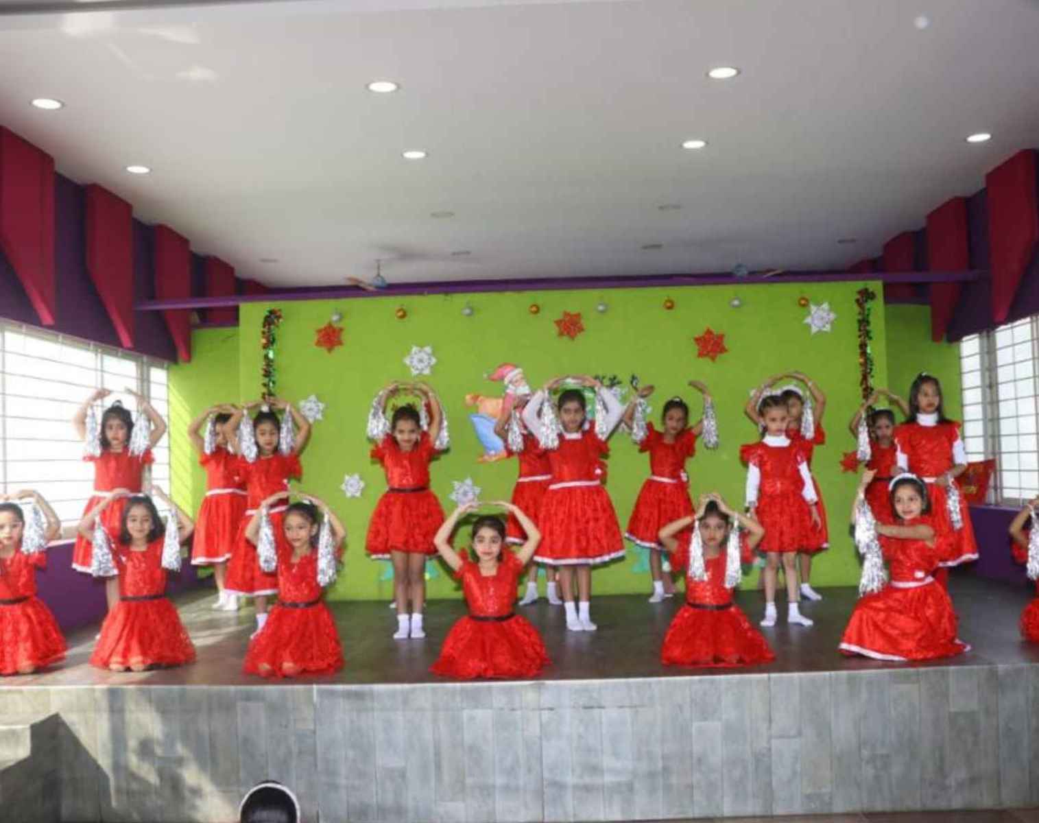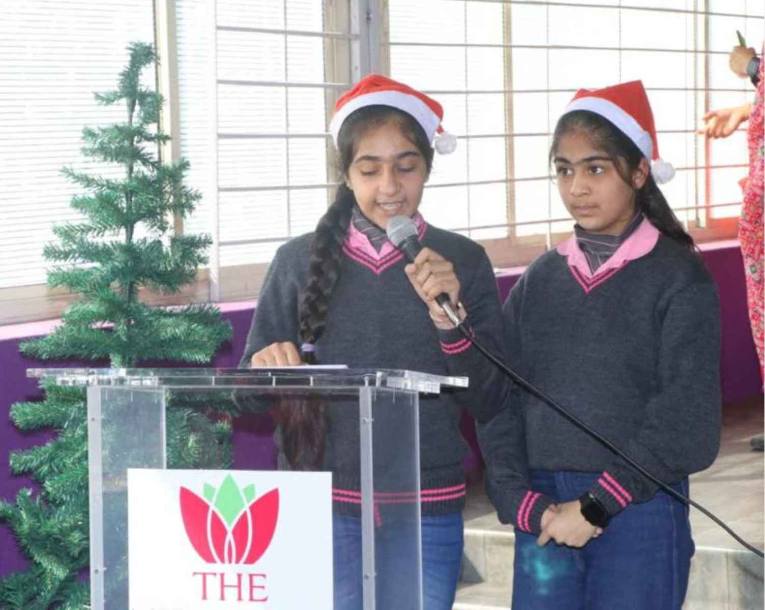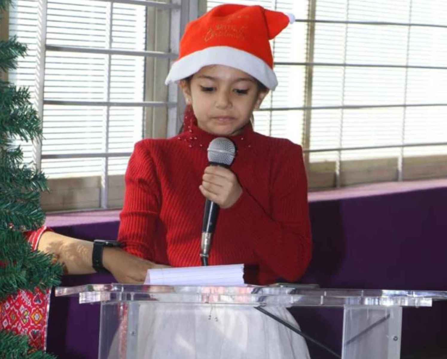 The school wore a festive look with bells, streamers, and a beautifully decorated Christmas tree. Several activities, such as decorating Christmas Trees and Stockings, making Christmas Cards, and Hand-crafted Bells were done by the students from grades Nursery to VII. The children were told about the birth of Lord Jesus and the legend of Santa Claus. The spirit of giving and sharing was inculcated among the tiny tots.