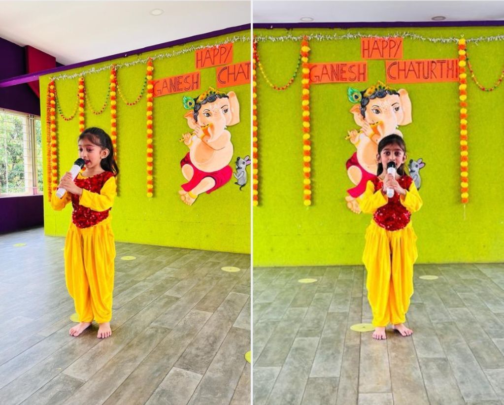 To celebrate and welcome Lord Ganesha’s coming from heaven, the students of Grade IV, along with the tiny tots of LKG, performed amazing dances on stage.