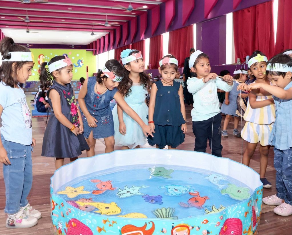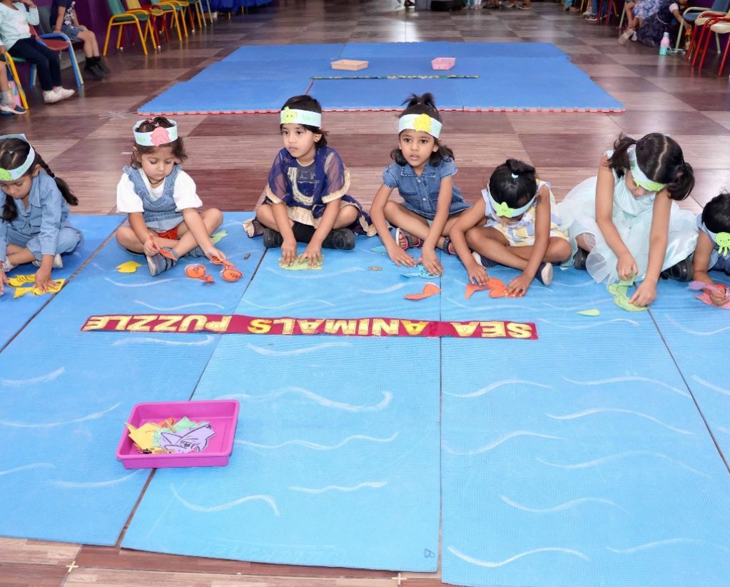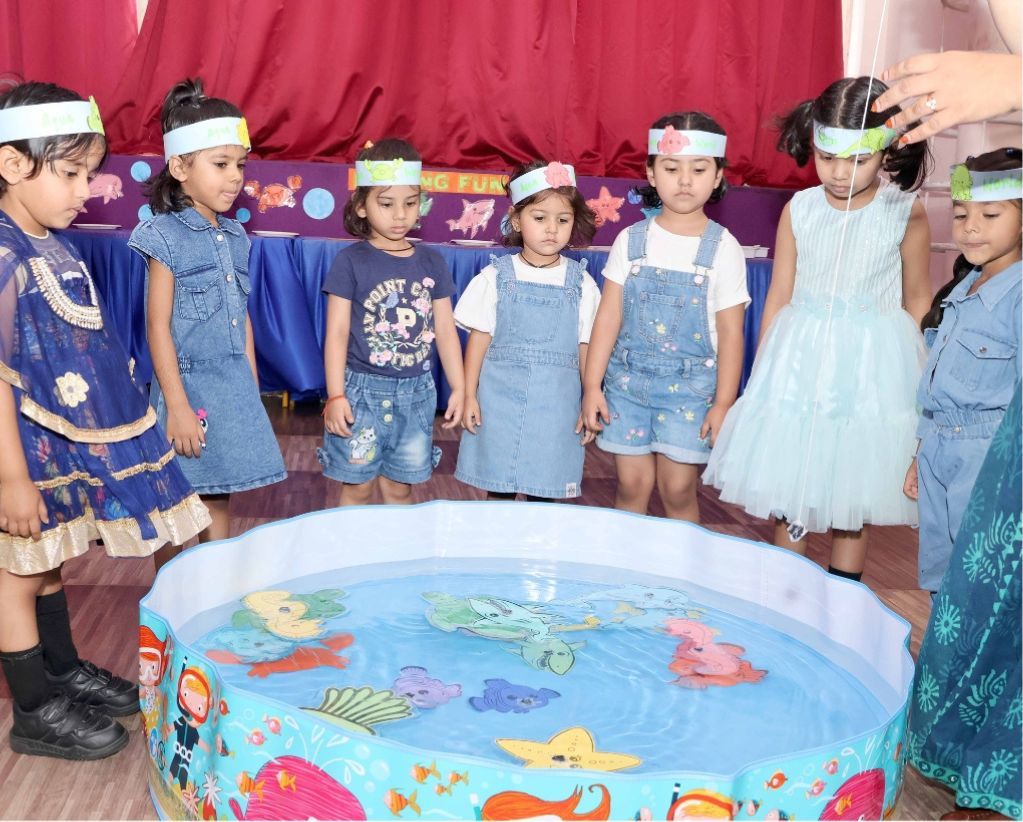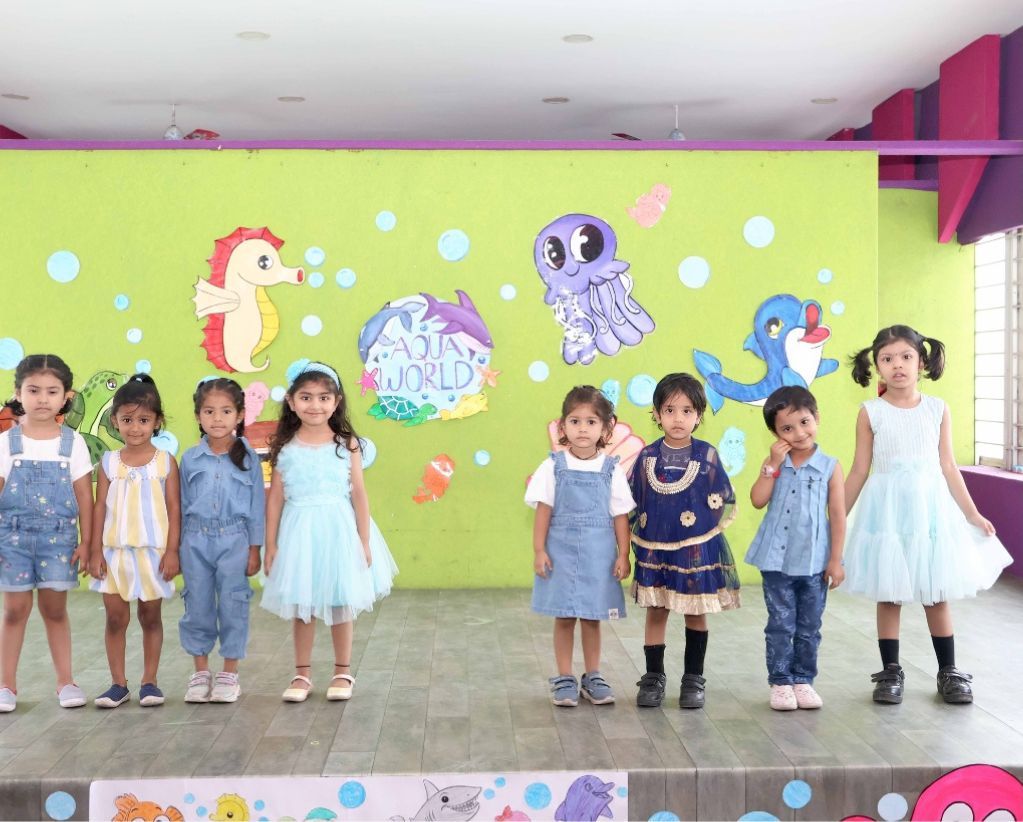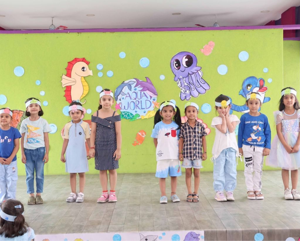 “AQUA,” as the name suggests, signifies “WATER.” Niranjana School created an extensive array of sea creatures through a plethora of activities such as fishing fun, marine magical wonders, spot the sea creature, shadow matching, and a dance that further acquainted the little mariners with underwater life. It was truly a feast for our eyes to see the little mariners decked out in blue, exploring underwater life.