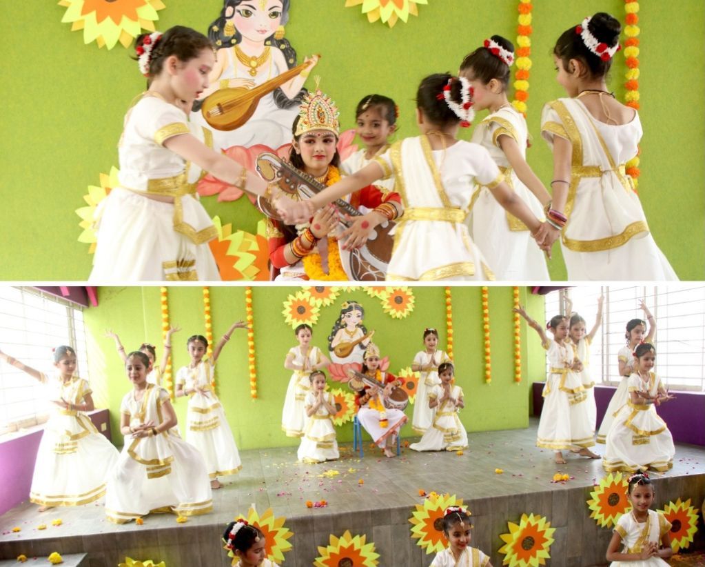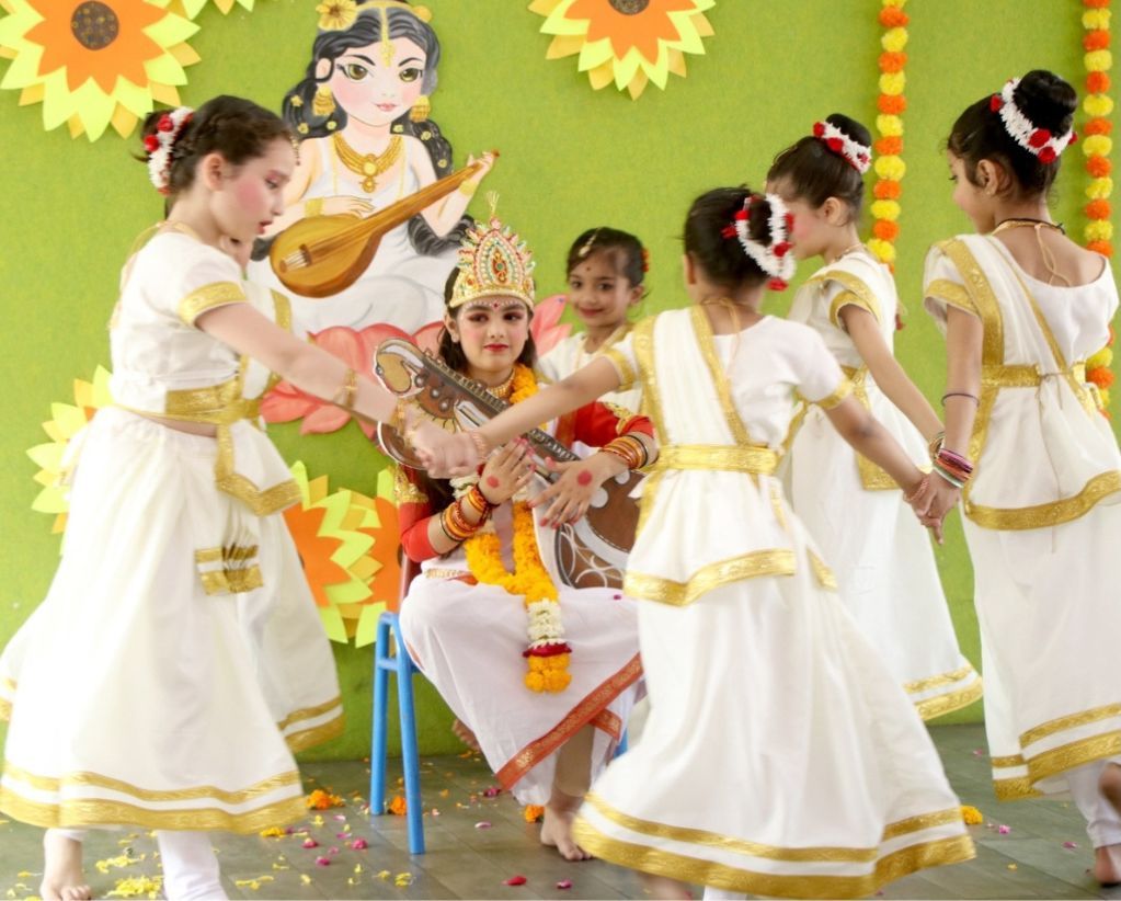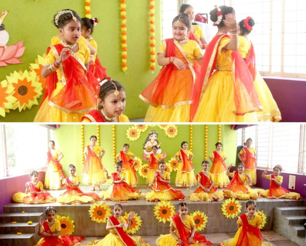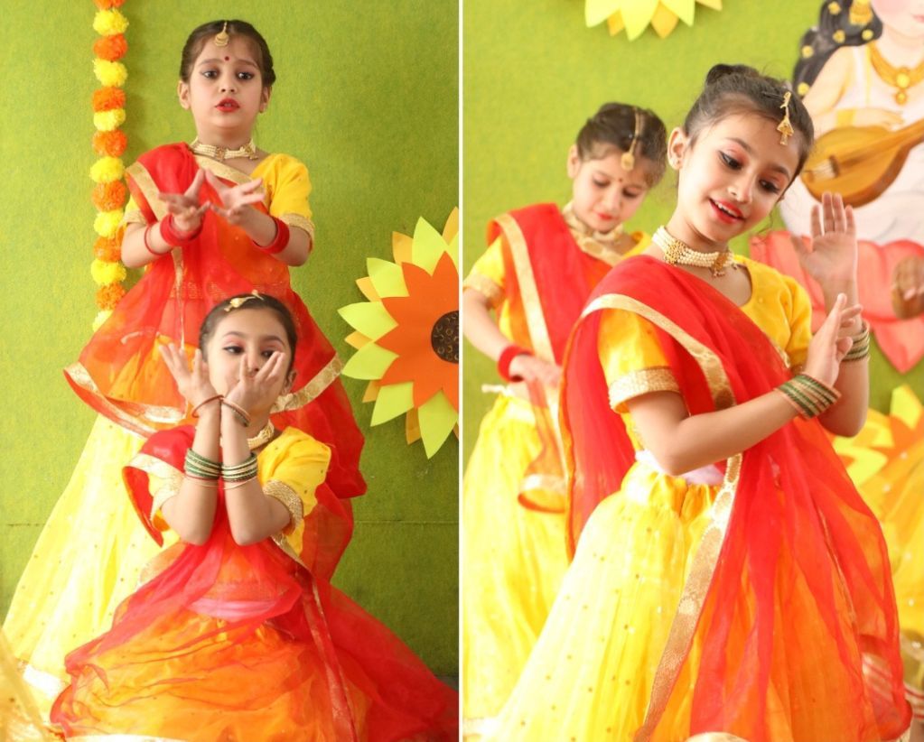 “Basant Panchami celebration – A tapestry of colours, culture, and creativity. Immersed in festivities, the school adorned itself in the hues of spring, honouring Goddess Saraswati’s wisdom and inspiration. The entire school resonated with a breathtaking execution by Grade II, decked out in vibrant colours.