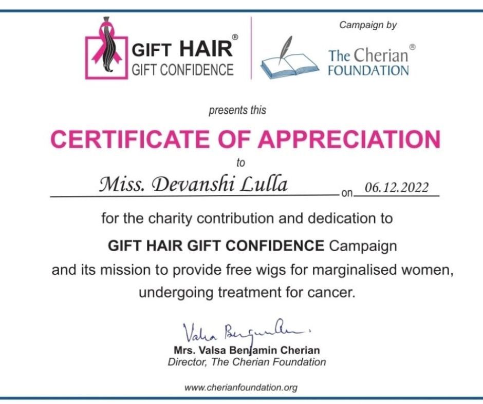 While many may not realise it, hair is an essential part of ourselves. It helps others distinguish us in a crowd; it allows us to shape our own identity. Devanshi, you have parted with a piece of your identity to put a smile on someone’s face. We hope this kindness multiplies manifold. We hope it spreads to all the corners of the world.